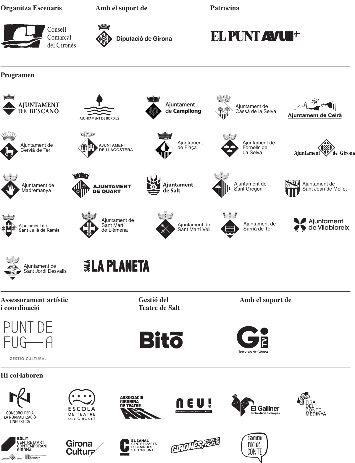 Inscriu-te i t’enviarem la programació d’Escenaris a la teva bústia: grans i petits escenaris, dansa i espectacles per a tots els públics arreu del Gironès.
