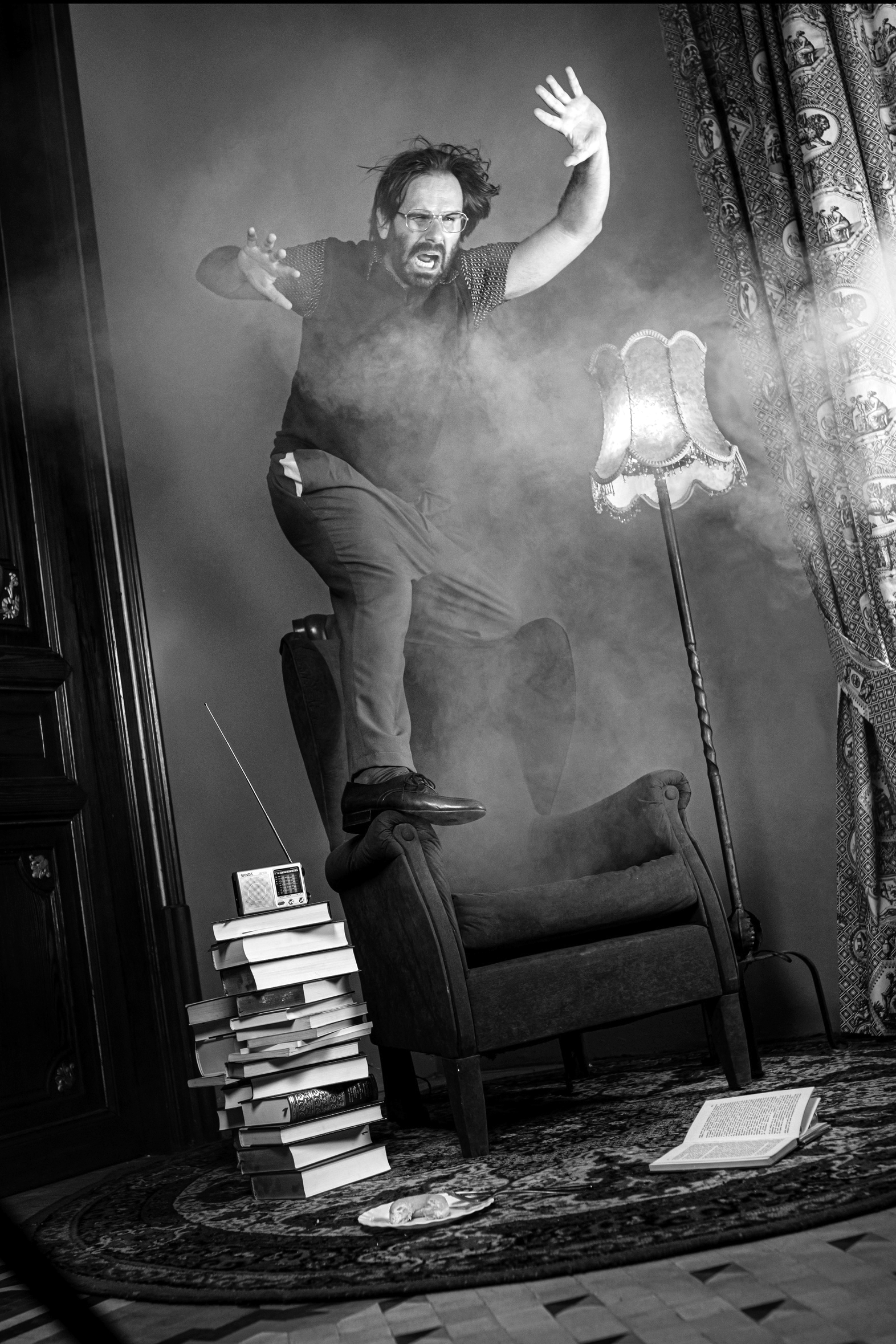 Un personatge, una ràdio i un paquet inesperat... Què passa quan el nostre destí immens, gloriós i lluent se'ns posa al davant? Que arrenquem a córrer! Aquesta és la resistència del nostre protagonista envoltat per una casa plena de portes a l'absurd. Ser el que sempre ha sabut que era, però ha mirat d'evitar fins avui: Ser l'heroi de la seva pròpia vida. Un viatge delirant que ens parla del coratge, l'autosuperació, la soledad i la transformació... un viatge que tot just acaba de començar.