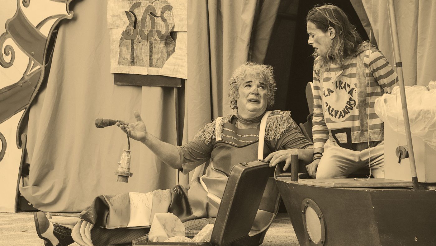 Una parella de pallassos, acompanyats d’una banda sonora original de música clàssica, representen diversos personatges i animals marins.